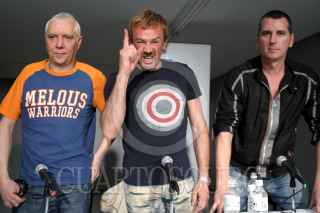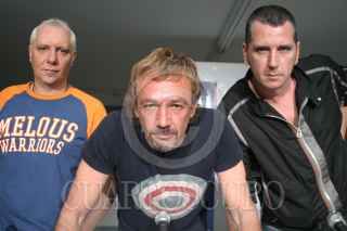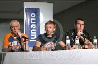 MEXICO, D.F. 07MARZO2005.- Mario Martinez, Rafa Sànchez, y Luis Bolin, integrantes del grupo musical, La Unión, al tèrmino de su conferencia, donde anunciaron las fechas de sus presentaciones en México, como parte de la gira de su 20 aniversario ¨Lobo Hombre en Paris¨, 10, 11 y 12 de marzo. FOTO: Sandra Perdomo/CUARTOSCURO.COM