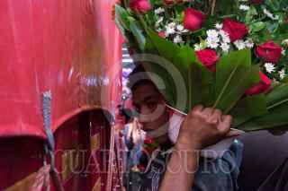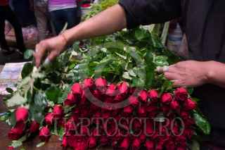 CIUDAD DE MÉXICO, 09MAYO2019.- Un comerciante carga arreglos de rosas en el Mercado de Jamaica por el festejo de mañana del Día de las Madres. FOTO: GRACIELA LÓPEZ /CUARTOSCURO.COM
