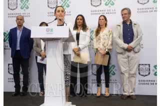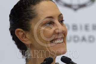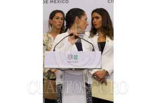 CIUDAD DE MÉXICO, 10MAYO2019.- La jefa del Gobierno capitalino, Claudia Sheinbaum Pardo, en conferencia de prensa esta mañana en la sala Francisco Zarco del Palacio del Ayuntamiento de la Ciudad. Asistieron, Marina Robles, Mariana Boy, Alessandra Rojo de la Vega legisladora del PVEM y el diputado de Morena Ricardo Fuentes. FOTO: VICTORIA VALTIERRA /CUARTOSCURO.COM