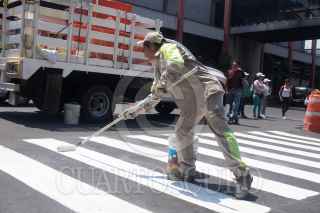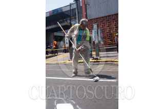 CIUDAD DE MÉXICO, 11MAYO2019.- Un trabajador del gobierno de la capital pintó señales de tránsito durante las actividades en el "Sábado de Tequio", el cual se realizó en la calle Alfredo Chavero esquina Calzada San Antonio Abad, en la alcaldía Cuauhtémoc. FOTO: GRACIELA LÓPEZ /CUARTOSCURO.COM