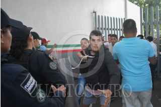 TAPACHULA, CHIAPAS, 12MAYO2019.- Cubanos que se encontraban recluidos en la Estación Migratoria Siglo XXI dieron portazo para luego de una protesta por las malas condiciones en las que se encuentran, también denunciaron que el Instituto Nacional de Migración los quería deportar sin darles oportunidad de hacer el trámite que les permita transitar libremente por el país, en su viaje hacia Estados Unidos. La Policía Federal llego al lugar pero no impidieron que los cubanos continuarán su camino de forma irregular. FOTO: DAMIÁN SÁNCHEZ /CUARTOSCURO.COM