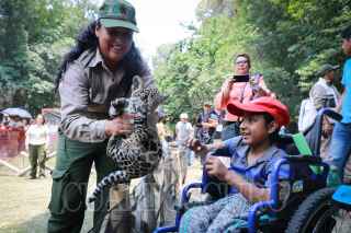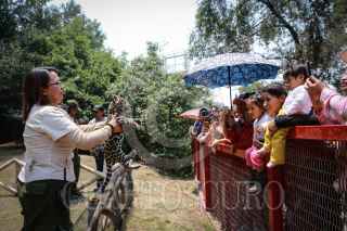 TLAXCALA, TLAXCALA, 12MAYO2019.- Una hembra jaguar nacida en cautiverio dentro del Programa de Reproducción del zoológico del Altiplano en Tlaxcala, fue presentada este domingo ante decenas de familias que se dieron cita en las instalaciones del Zoológico.. Esta cachorra nació en buenas condiciones de salud el pasado 20 de marzo con un peso de poco más de 500 gramos y y una estatura de 15 centímetros. La gestación del cría de jaguar fue de 110 días, pero tres días antes empezó el proceso de vigilancia permanente de 24 horas ya que no existía una certeza del momento en el que la jaguar daría a luz, los médicos celebraron que la madre mostrara aceptación y paciencia para alimentar a la cachorrita y así lo hizo por 10 días, tiempo en el que pudo brindarle los nutrientes esenciales para garantizar su supervivencia. Cabe recordar que con este nuevo ejemplar el Zoológico del Altiplano ya cuenta con cinco felinos nacidos en cautiverio, el primero fue el león blanco “Xonotli” y posteriormente “Iztaxóchitl”, “Tlayólotl” y “Nieve”. FOTO: JOAQUIN SANLUIS /CUARTOSCURO.COM