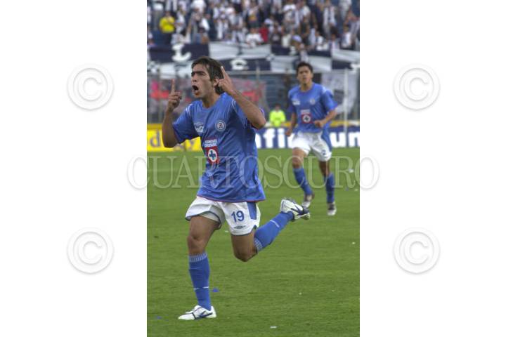 MEXICO, D.F. 12MARZO2005.- Francisco "Kikín" Fonseca (Cruz Azul) disputó un balón con fernando Salazar (Pachuca) en el partido de la jornada 9 del torneo de clausura 2005 en el que Cruz Azul venció 4 goles a cero a los Tuzos del Pachuca en el estadio Azul. FOTO: Iván Stephens/CUARTOSCURO.COM