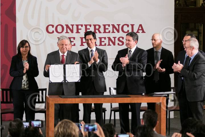CIUDAD DE MÉXICO, 13MAYO2019.- Andrés Manuel López Obrador, presidente de México, durante la conferencia de prensa donde se firmó el decreto por ocho mil millones de pesos con las instituciones bancarias HSBC, Mitzuho Securities y J.P. Morgan para fortalecer las finanzas de PEMEX. FOTO: GALO CAÑAS /CUARTOSCURO.COM