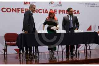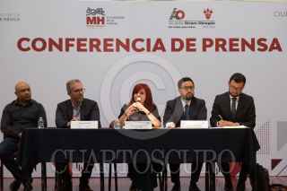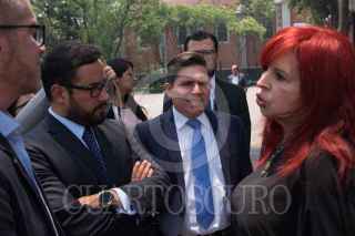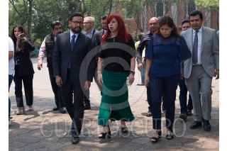 CIUDAD DE MÉXICO, 14MAYO2019.- Juan Zepeda, presidente de la Asociación Liga Ciudadana; Víctor Hugo Romo, alcalde de Miguel Hidalgo; Raúl Paredes Peña, concejal en la alcaldía Miguel Hidalgo y Layda Elena Sansores San Roman, alcaldesa de Álvaro Obregón se despidieron al finalizar la conferencia de prensa en la que informaron las acciones y estrategias contra el cartel inmobiliario en ambas demarcaciones, se realizó en la Ex capilla Guadalupe, ubicada en Parque Lira, colonia Observatorio. FOTO: GRACIELA LÓPEZ /CUARTOSCURO.COM