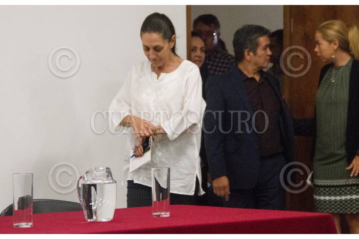 CIUDAD DE MÉXICO, 14MAYO2019.- La jefa del Gobierno de la Ciudad, Claudia Sheinbaum, canceló su agenda y se reunió con autoridades de Semarnat para anunciar las medidas de la contingencia ambiental extraordinaria Fase I. La acompaña Sergio Sánchez funcionario Federal de Medio Ambiente. FOTO: VICTORIA VALTIERRA /CUARTOSCURO.COM