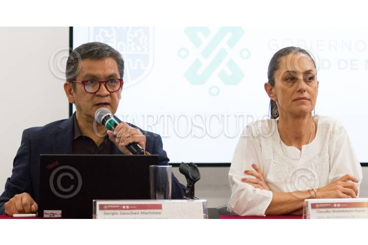CIUDAD DE MÉXICO, 14MAYO2019.- La jefa del Gobierno de la Ciudad, Claudia Sheinbaum, canceló su agenda y se reunió con autoridades de Semarnat para anunciar las medidas de la contingencia ambiental extraordinaria Fase I. La acompaña Sergio Sánchez funcionario Federal de Medio Ambiente. FOTO: VICTORIA VALTIERRA /CUARTOSCURO.COM