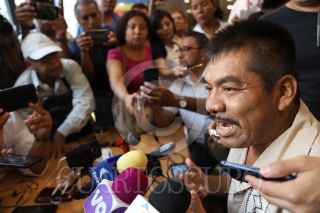 ACAPULCO, GUERRERO, 14MAYO2019.- En conferencia de prensa el dirigente de la policía comunitaria y Unión de Pueblos y Organizaciones del Estado de Guerrero (Upoeg), Bruno Plácido Valerio, recalcó que la agrupación que encabeza busca fortalecer la organización comunitaria y garantizar la seguridad de la población. En referencia a los hechos ocurridos en la comunidad de Xaltianguis el pasado 7 de mayo, cuando se suscitó un enfrentamiento con civiles armados, sostuvo que está dispuesto a comparecer ante la Fiscalía General del Estado (FGE), sostiene que en realidad son delincuentes disfrazados de comunitarios. FOTO: BERNANDINO HERNÁNDEZ /CUARTOSCURO.COM