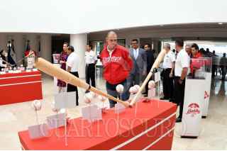 CIUDAD DE MÉXICO, 14MAYO219.- Como parte de los eventos que se han organizado para festejar la inauguración del Estadio Alfredo Harp Helú, la nueva casa de los Diablos Rojos del México, el Archivo Histórico del Beisbol ha montado la exposición Mis Diablos, Mi Ciudad, en las instalaciones del Centro de Estudios Superiores Navales (CESNAV), perteneciente a la Secretaría de Marina Armada de México. A la ceremonia de inauguración asistieron por parte del CESNAV, Almirante Del Cuerpo General Diplomado De Estado Mayor José Luis Arellano Ruiz, Rector De La Universidad Naval, el Vicealmirante José Tomás Jorge Tress Zilly, Director Del Centro De Estudios Superiores Navales (CESNAV) y el Contralmirante Juan Martín Aguilar Morales, Jefe De La Unidad De Historia Y Cultura Naval (Unhicun). FOTO: DIABLOS ROJOS DEL MÉXICO /CUARTOSCURO.COM