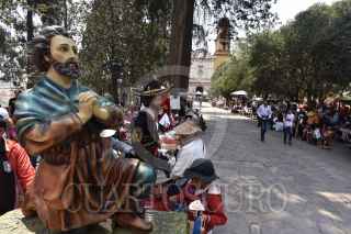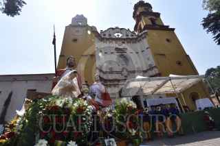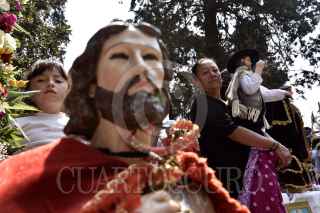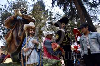 METEPEC, ESTADO DE MÉXICO, 15MAYO2019.- Habitantes de este municipio festejaron a su santo patrono San Isidro Labrador, llevando sus imágenes a misa en la iglesia de San Juan Bautista, y pedir por una buena cosecha y lluvias abundantes. FOTO: CRISANTA ESPINOSA AGUILAR /CUARTOSCURO.COM