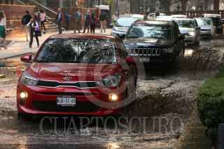 CIUDAD DE MÉXICO, 16MAYO2019.- Tras las intensas lluvias que se presentaron el día de ayer, la ciudad amaneció con encharcamientos en distintos puntos de la ciudad, lo cual ocasionó caos vial a tempranas horas de este jueves. FOTO: ROGELIO MORALES /CUARTOSCURO.COM