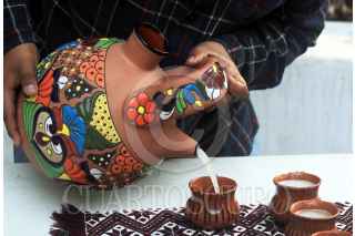 CUERNAVACA, MORELOS, 16MAYO2019.- En conferencia de prensa de autoridades del municipio de Huitzilac, fue anunciada la Feria del Pulque y la Barbacoa, la cual se realizará del 17 al 19 de este mes en este municipio del norte del estado, en la imagen un hombre sirve pulque en garros. FOTO: MARGARITO PÉREZ RETANA /CUARTOSCURO.COM