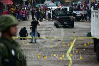 XALAPA, VERACRUZ, 16MAYO2019.- Esta tarde se registro un ataque armado en la localidad de Tuzamapan el municipio de Coatepec donde hombres armados que se trasladaban presuntamente a bordo de dos camionetas: una Liberty azul, y una Tacoma color arena abrieron fuego en contra de un grupo de personas que se encontraban descargando limones en rejas, para luego huir con rumbo al municipio de Jalcomulco, según reportes oficiales en el área se encontraron 90 casquillos percutidos de calibres 9 y 7.62 milímetros, se habla de al menos 5 personas sin vida y mas de 10 heridos, al lugar arribaron fuerzas del orden quienes mantienen un operativo para dar con los responsables. FOTO: CUARTOSCURO.COM