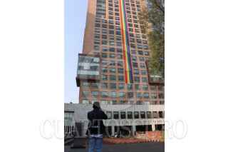 CIUDAD DE MÉXICO, 17MAYO2019.- La mañana de este viernes el edifico de la Secretaría de Relaciones Exteriores de la ciudad, fue decorado con la bandera del arcoíris esto en el marco del Día Internacional contra la Homofobia, la Transfobia y la Bifobia. FOTO: ROGELIO MORALES /CUARTOSCURO.COM