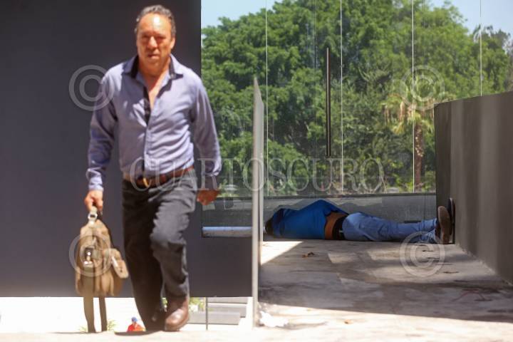 GUADALAJARA, JALISCO, 17MAYO2019.- Una persona en situación de calle duerme mientras transeúntes pasan por un puente peatonal ubicado en la calle Dr. Baeza Alzaga a su cruce con la avenida Miguel Hidalgo, en el centro de la ciudad. FOTO: FERNANDO CARRANZA GARCIA / CUARTOSCURO.COM