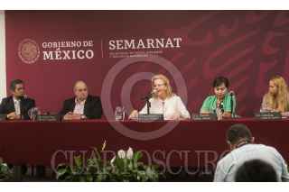 CIUDAD DE MÉXICO, 17MAYO2019.- Josefa González Blanco, secretaria de Medio Ambiente y Recursos Naturales, ofreció conferencia de prensa para anunciar que las condiciones climáticas de los próximos días permitiran que la contaminación en la ciudad se disipe. En la imagen, con Víctor Hugo Páramo, titular de la Comisión Ambiental de la Megalópolis, y MArina Robles García, titular de la Sedema. FOTO: ISAAC ESQUIVEL /CUARTOSCURO.COM