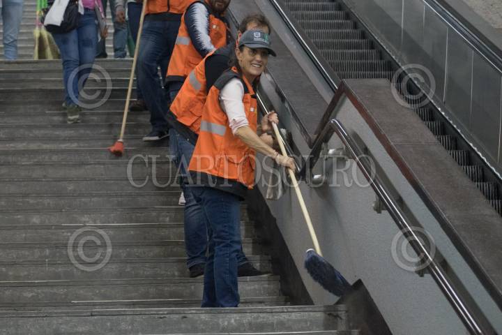 CIUDAD DE MÉXICO, 18MAYO2019.- Vecinos de la alcaldía Miguel Hidalgo participaron en las actividades del "Sábado de Tequio", el cual fue encabezado por la jefa de Gobierno, Claudia Sheinbaum, en la entrada de la salida de la estación del Metro San Joaquín, calle Hielmar, esquina calle Lago Ginebra, colonia Modelo Pensil. FOTO: GRACIELA LÓPEZ /CUARTOSCURO.COM