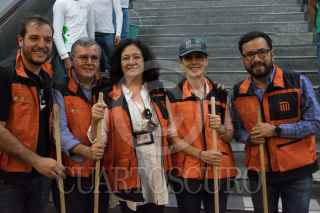 CIUDAD DE MÉXICO, 18MAYO2019.- Vecinos de la alcaldía Miguel Hidalgo participaron en las actividades del "Sábado de Tequio", el cual fue encabezado por la jefa de Gobierno, Claudia Sheinbaum, en la entrada de la salida de la estación del Metro San Joaquín, calle Hielmar, esquina calle Lago Ginebra, colonia Modelo Pensil. FOTO: GRACIELA LÓPEZ /CUARTOSCURO.COM