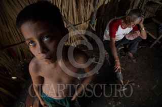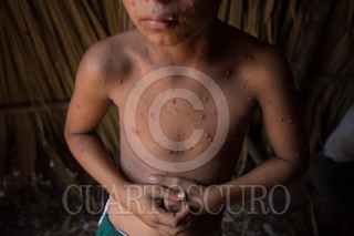 LAGUNA LARGA, GUATEMALA, 18MAYO2019.- El pasado 2 de junio de 2017, la comunidad campesina de Laguna Larga conformada por alrededor de 110 familias, 410 personas, que permanecía al margen de la Laguna desde 2001, de manera ilegal de acuerdo con El Consejo Nacional de Áreas Protegidas (Conap), se desplazó a los límites de la frontera con México al saber que la Policía Nacional Civil (PNC) llevaría a cabo el desalojo para recuperar el área. Un día después, el 3 de junio, la PNC, el Conap y el ejército de Guatemala, siguiendo las instrucciones de “tierra arrasada” entraron al poblado y al encontrarlo vacío comenzaron con la quema y destrucción de las viviendas. Desde entonces las familias sufren muchas carencias, desnutrición, anemia y otras enfermedades. Recientemente el brote de varicela los tiene alarmados por la facilidad con la que se propaga entre los niños y adultos no vacunados. No cuentan con agua potable y la alimentación es insuficiente. Ante la falta de vacunas o medicamentos que ayuden a minorar la propagación del virus estos acuden a “Remedios de Monte”, como le conocen. Según Práxedes Gonzales, habitante de Launa Larga, este consiste en machacar las hojas del árbol de tinta, ciruela, madre cacao y la semilla de la chihua (calabaza) y se remojan en agua. Este remedio es utilizado para bañarse y untarse directamente en la piel y así tratar de disminuir el ardor y la comezón. En agosto de 2017 la Comisión Interamericana de Derechos Humanos (CIDH) ordenó medidas cautelares para las más de 100 familias que habitan en el campamento de Desplazados sin embargo, a pocas semanas de cumplirse dos años desde el desalojo, el Estado de Guatemala no ha cumplido sus obligaciones y la presencia en asistencia humanitaria ha sido mínima. FOTO: MARTÍN ZETINA /CUARTOSCURO.COM