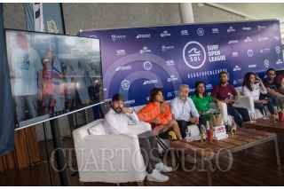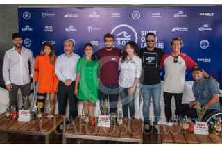 CIUDAD DE MÉXICO, 18MAYO2019.- Gustavo Duccini, director de Surf Open League, presidio conferencia de prensa junto con la directora de turismo en Oaxaca Elizabeth Arredondo, y los surfistas Jhony corzo, Coco Nogalez, Ana Laura González y Daniel Gómez, donde presentaron el evento Surf Open Leauge y Princess Mundo Imperial. FOTO: ANDREA MURCIA /CUARTOSCURO.COM