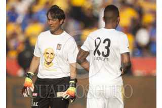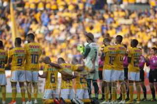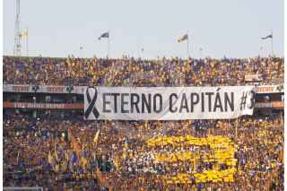 MONTERREY, NUEVO LEÓN, 18MAYO2019.- En honor al ex futbolista Osvaldo Batolcetti, jugadores del equipo de los Tigres portan una playera con su rostro, guardan un minuto de silencio y la afición coloca una manta en su memoria, previo al partido Tigres vs Monterrey. Batocletti murió a los 69 años víctima de cáncer de próstata. FOTO: GABRIELA PÉREZ MONTIEL /CUARTOSCURO.COM