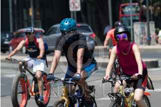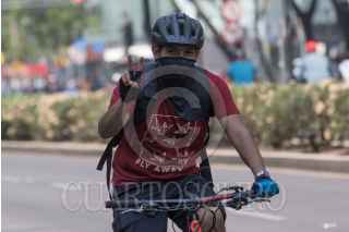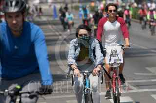 CIUDAD DE MÉXICO, 19MAYO2019.- El pasado viernes la Comisión Ambiental de la Megalópolis levantará la contingencia ambiental extraordinaria en el Valle de México, esto luego de que las condiciones climatológicas ayudarán a la dispersión de los contaminantes, sin embargo, la calidad de al aire se mantiene regular, por ejemplo en el municipio mexiquense de Ecatepec amaneció con 101 puntos de partículas suspendidas (PM10), aunque todo esto no ahuyentó a cientos capitalinos a participar en el paseo ciclista de avenida Reforma, muchos de ellos con mascarillas o pañoletas que les mitigarán los efectos de la contaminación. FOTO: MOISÉS PABLO /CUARTOSCURO.COM