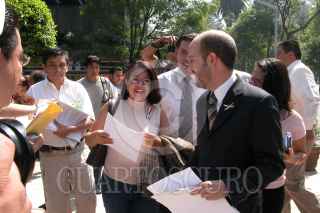 MEXICO, D.F. 13ABRIL2005.- Diputados federales del PRD encabezados por Inti Muñoz se presentaron el la PGR para demandar a Dolores Creel, hermana del Secretario de Gobernación, por uso irregular de recursos públicos. FOTO: CUARTOSCURO.COM