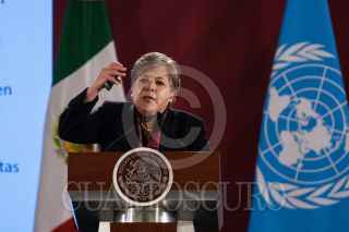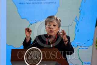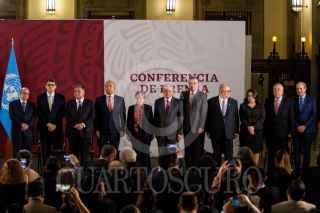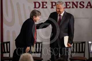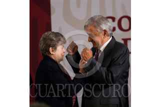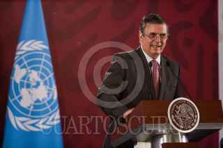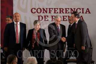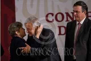 CIUDAD DE MÉXICO, 20MAYO2019.- Alicia Barcena Ibarra, secretaria ejecutiva de la Comisión Económicas para América Latina y El Caribe (Cepal), Andrés Manuel López Obrador, presidente de México, y Marcelo Ebrard, secretario de Relaciones Exteriores, durante la presentación a México de la propuesta de la Cepal para el Programa de Desarrollo Integral El Salvador-Guatemala-Honduras-México, FOTO: GALO CAÑAS /CUARTOSCURO.COM