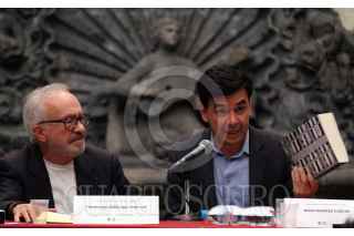 CIUDAD DE MÉXICO, 20MAYO2019.- Francisco Martínez Marcue y Jesús Ramírez Cuevas, vocero del Gobierno de la República durante la presentación del libro "1968, Aquí y Ahora, a cincuenta años del Movimiento Estudiantil Testimonios y Reflexiones", la cual se realizó en al Museo de la Ciudad de México. FOTO: GRACIELA LÓPEZ /CUARTOSCURO.COM