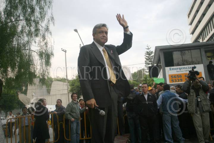 MEXICO, D.F 14ABRIL2005.- Nicolás Mollinedo Bastar, escucha a López Obrador, durante la conferencia que ofreciò a los medios de comunicaciòn en un parque cerca de su casa. FOTO: Nelly Salas/CUARTOSCURO.COM