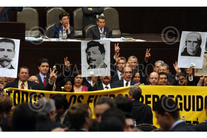 MEXICO, D.F., 14ABRIL2005.- Pablo Gómez, diputado del PRD y Jorge González Morfin, diputado del PAN, durante la sesión en la Cámara de Diputados. FOTO: Moisés Pablo/CUARTOSCURO.COM