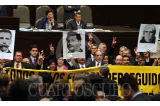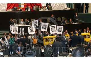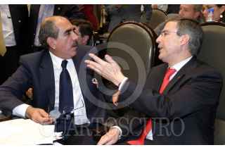 MEXICO, D.F., 14ABRIL2005.- Pablo Gómez, diputado del PRD y Jorge González Morfin, diputado del PAN, durante la sesión en la Cámara de Diputados. FOTO: Moisés Pablo/CUARTOSCURO.COM