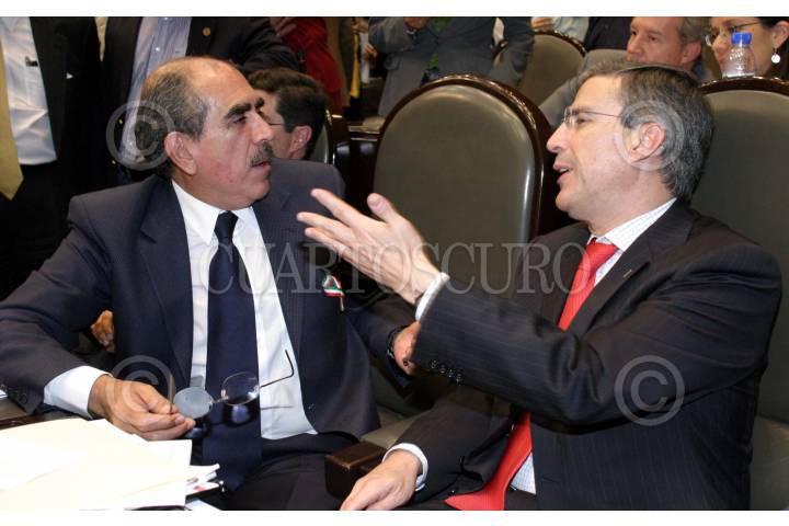 MEXICO, D.F., 14ABRIL2005.- Pablo Gómez, diputado del PRD y Jorge González Morfin, diputado del PAN, durante la sesión en la Cámara de Diputados. FOTO: Moisés Pablo/CUARTOSCURO.COM
