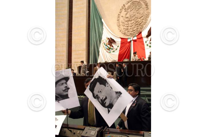 MEXICO, D.F., 14ABRIL2005.- Víctor Suárez Carrera y Salvador Martínez Della Roca, diputados del PRD, durante las manifestaciones que realizaron los perredistas en la sesión de la Cámara de Diputados. FOTO: Moisés Pablo/CUARTOSCURO.COM