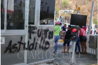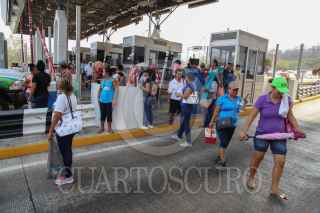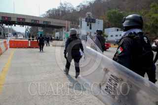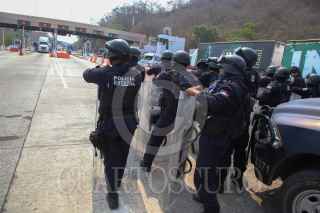 ACAPULCO, GUERRERO, 24MAYO2019.- Madres de familia de la zona Escolar 44 de Acapulco tomaron la caseta de La Venta de la Autopista del Sol, para manifestarse y exigir a las autoridades de la Secretaria de la Educación de Guerrero maestros que hacen falta en ocho escuelas de esa zona. Durante la toma de la caseta pidieron una cooperación de 50 pesos a los automovilistas para poder pagar a maestros interinos. Alrededor de 30 policías antimotines estatales llegaron para tratar de disuadir la protesta, por lo que las madres de familia optaron por retirarse del lugar. FOTO: CARLOS ALBERTO CARBAJAL /CUARTOSCURO.COM