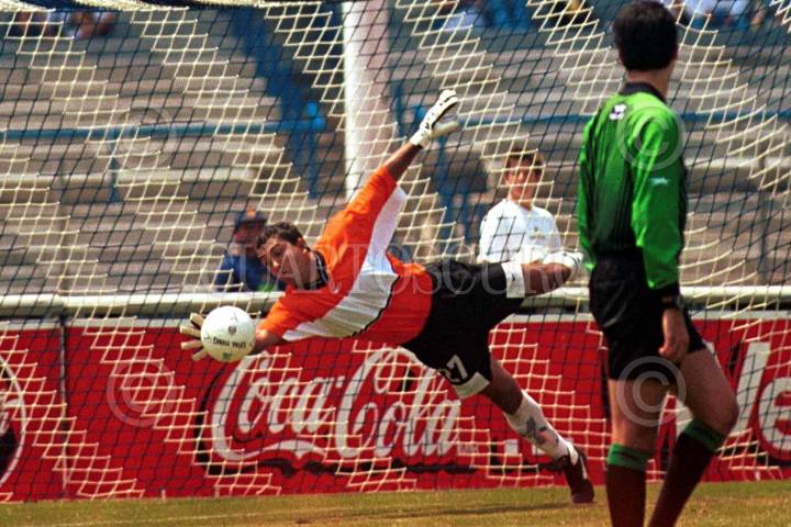 El delantero de Pumas Julio Cesar Yegros, pelea un balon en el area chica de Chivas. Pumas y Guadalajara empataron a cero goles este medio dia en Ciudad Universitaria. FOTO: Fernanda Sánchez/CUARTOSCURO.COM