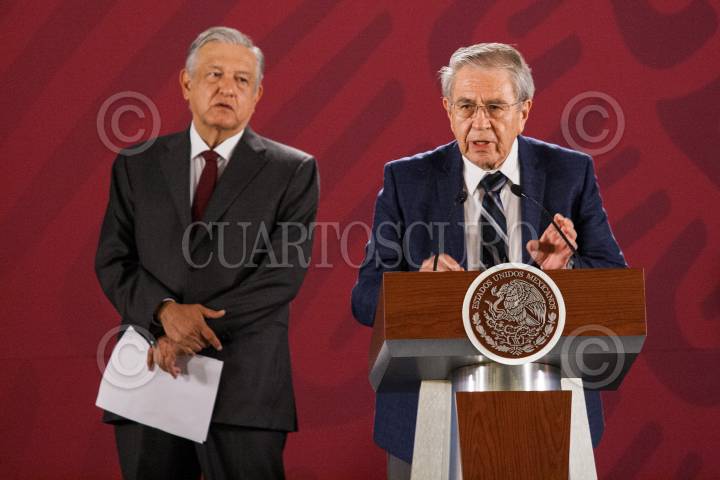 CIUDAD DE MÉXICO, 27MAYO2019.- Andrés Manuel López Obrador, presidente de México, durante la conferencia matutina para informa sobre el nuevo titular de la Secretaria de Medio Ambiente y Recursos Naturales (SEMARNAT), Víctor Manuel Toledo. FOTO: GALO CAÑAS /CUARTOSCURO.COM