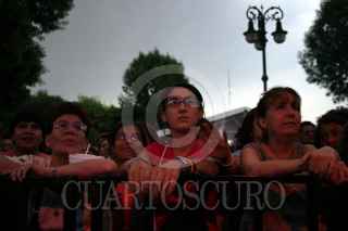MEXICO, D.F. 14ABRIL2005.- Los asistentes al concierto del canta autor cubano, Pablo Milanes no se retiraron del jardin Hidalgo apesar de la lluvia. FOTO: Sandra Perdomo/CUARTOSCURO.COM