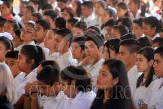 CUERNAVACA, MORELOS, 27MAYO2019.- Cuauhtémoc Blanco Bravo, gobernador de Morelos, durante el evento de reinauguración de la secundaria número 14, la cual fue afectada por el sismo del 19 de septiembre del 2017. En la imagen estudiantes escuchan el discurso de las autoridades. FOTO: MARGARITO PÉREZ RETANA /CUARTOSCURO.COM