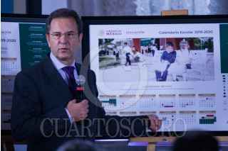 CIUDAD DE MÉXICO, 27MAYO2019.- Esteban Moctezuma Barragán, secretario de Educación Pública, durante la presentación del Calendario Escolar 2019-2020, el cual contará con 190 días y busca favorecer la convivencia familiar. FOTO: GALO CAÑAS /CUARTOSCURO.COM