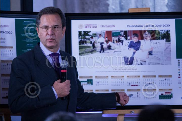 CIUDAD DE MÉXICO, 27MAYO2019.- Esteban Moctezuma Barragán, secretario de Educación Pública, durante la presentación del Calendario Escolar 2019-2020, el cual contará con 190 días y busca favorecer la convivencia familiar. FOTO: GALO CAÑAS /CUARTOSCURO.COM