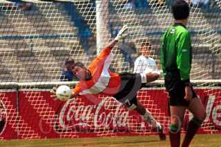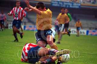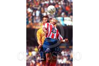 El delantero de Pumas Julio Cesar Yegros, pelea un balon en el area chica de Chivas. Pumas y Guadalajara empataron a cero goles este medio dia en Ciudad Universitaria. FOTO: Fernanda Sánchez/CUARTOSCURO.COM
