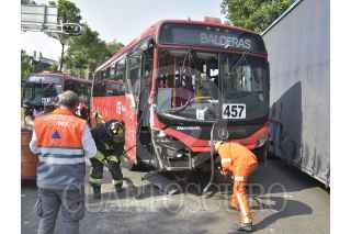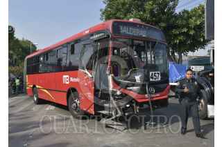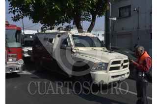 CIUDAD DE MÉXICO, 28MAYO2019.- Se registro un choque entre un Metrobus y una camioneta de valores, testigos indican que el transporte público no respeto el semáforo en color rojo, se reportaron dos pasajeros lesionados. Los hechos ocurrieron en San Simón y Guerrero colonia San Simón Tolnahuac. FOTO: ARMANDO MONRROY /CUARTOSCURO.COM