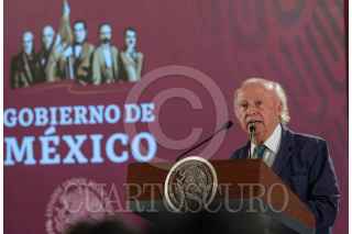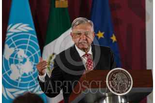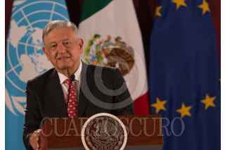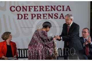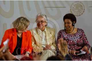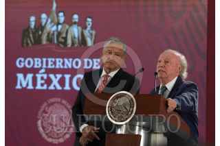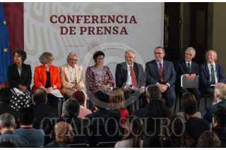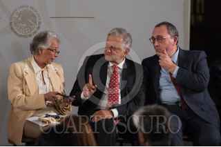 CIUDAD DE MÉXICO, 29MAYO2019.- El presidente de la República Andrés Manuel López Obrador y Víctor Manuel Toledo, secretario de Medio Ambiente y Recursos Naturales, durante la conferencia matutina para dar detalles sobre la Iniciativa Spotlight que pretende eliminar los feminicidios en México. FOTO: ANDREA MURCIA /CUARTOSCURO.COM