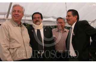 MEXICO, D.F. 15ABRIL2005.- El senador Elías Miguel Moreno Brizuela, se integró al ayuno pacífico que el grupo parlamentario del PRD, realiza afuera de Los Pinos,el senador relevó al legislador Raymundo Cárdenas, durante el relevo estuvo presente el coordinandor del Grupo Parlamentario, el senador Jesús Ortega Martínez. FOTO: CUARTOSCURO.COM