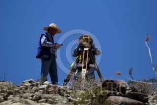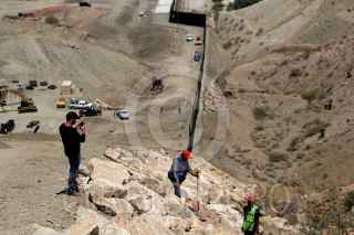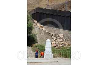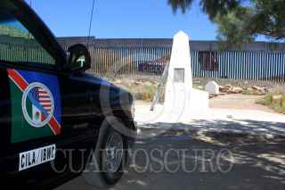 CIUDAD JUÁREZ, CHIHUAHUA, 29MAYO2019.- Esta mañana arribaron representantes de la Comisión Internacional de Límites y Aguas (CILA), al lugar donde se construye un muro de manera independiente entre México y Estados Unidos, con la finalidad de verificar la obra realice del lado norteamericano. Para ello los funcionarios federales llevaron topógrafos, quienes con aparatos especiales midieron donde están los límites entre ambos países, colocando estacas las cuales pintaron con pintura fosforescente, con la finalidad de delimitar el territorio mexicano y evitar la obra se pase a este país. Mientras desarrollaban su trabajo los representantes de CILA eran vigilados por personal de la Border Patrol, además de ciudadanos americanos, quienes se encargan de cuidar la frontera, para que no se internen personas de forma ilegal a Estados Unidos. FOTO: NACHO RUÍZ /CUARTOSCURO.COM