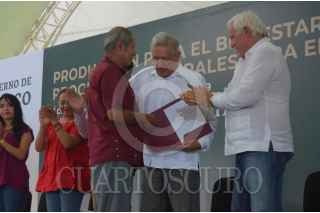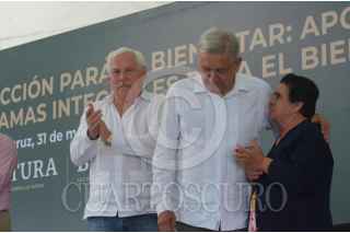 COATEPEC, VERACRUZ, 31MAYO2019.- Andrés Manuel López Obrador, Presidente de México; Víctor Villalobos, secretario de Agricultura, y Cuitláhuac García, gobernador de la entidad, encabezaron la entrega de apoyos del programa "Producción para el Bienestar: Apoyo a Cafeticultores". FOTO: ANDRÉS YAÑEZ /CUARTOSCURO.COM
