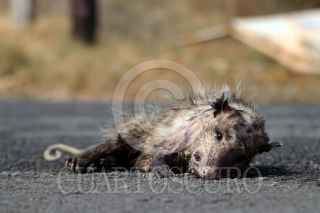 JOJUTLA, MORELOS, 01JUNIO2019.- El cuerpo sin vida de un tlacuache yace en la carretera que conduce al poblado de Tequesquitengo. FOTO: MARGARITO PÉREZ RETANA /CUARTOSCURO.COM