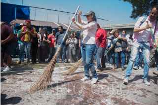 CIUDAD DE MEXICO. 01JUNIO2019.- Claudia Sheinbaum, Jefa de Gobierno de la capital, encabezó la jornada de "Sábado de Tequio" en las inmediaciones del metro Tacuba, como parte de las recuperaciones integrales de espacios públicos. FOTO: MARIO JASSO /CUARTOSCURO.COM