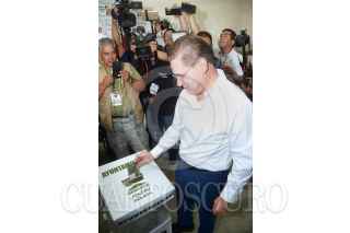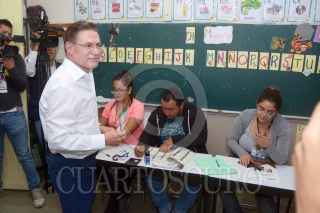 DURANGO, DURANGO, 02JUNIO2019.- El gobernador de estado Jose Rosas Aispuro Torres, acudió a emitir su voto en la jornada electoral 2019 para elegir a 39 alcaldes del estado de Durango, señalando que espera una jornada tranquila sin incidentes y que se mantendrá la vigilancia para que así continúe y que la ciudadanía pueda salir a votar. FOTO: OCTAVIO ZALDIVAR /CUARTOSCURO.COM